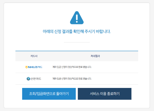 | 삼성카드: 1588-8700 | NH농협카드: 1644-4000 |