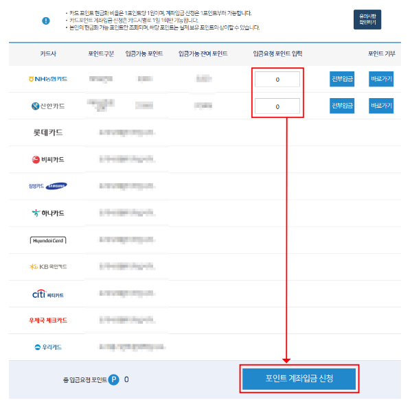 카드포인트 계좌입금 신청방법