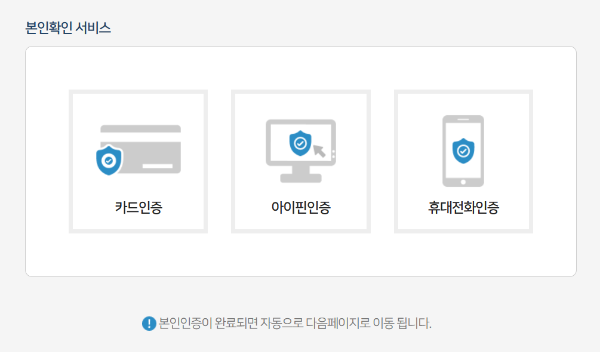 5. 비회원 로그인을 할 때 카드, 아이핀, 휴대전화 인증 중 자신이 사용하기 편한 한 가지를 선택해 인증해주시면 됩니다.